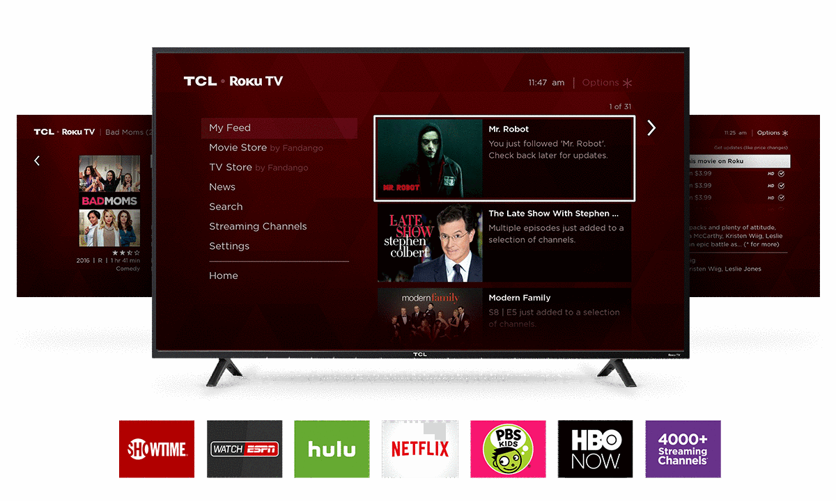 Verbiage: No more flipping through inputs or wading through complicated menus. Like apps on a smartphone, all your favorites are at your fingertips from the instant you turn it on. Choose from more than 4,000 streaming channels that feature over 400,000 movie and TV episodes plus live sports, news, music, kids and family, food, science and tech, fitness, foreign language, and so much more.